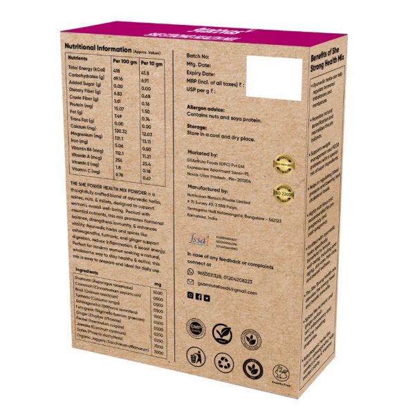 - The She Strong health mix elevates the energy level and boosts immunity.